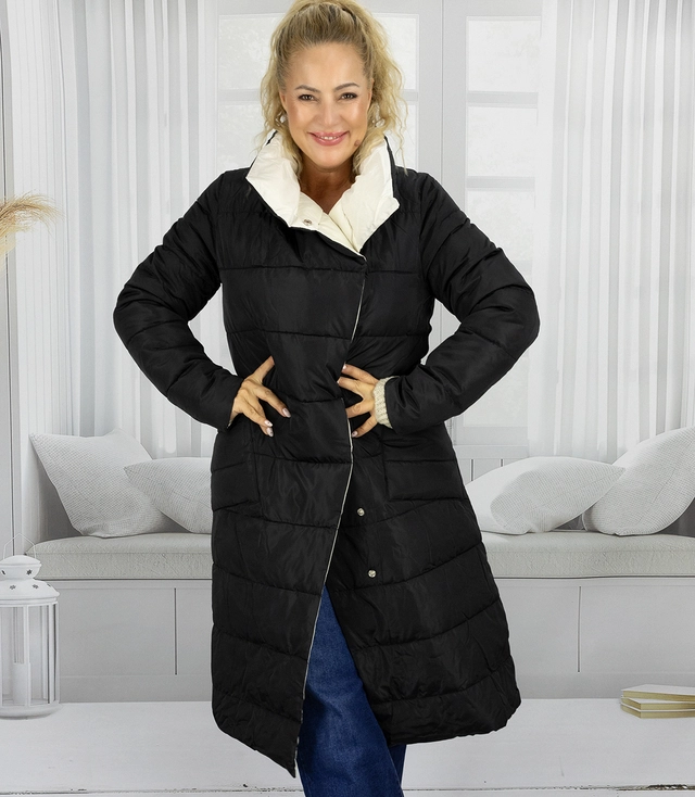 Długa kurtka damska dwustronny pikowany płaszcEMMA