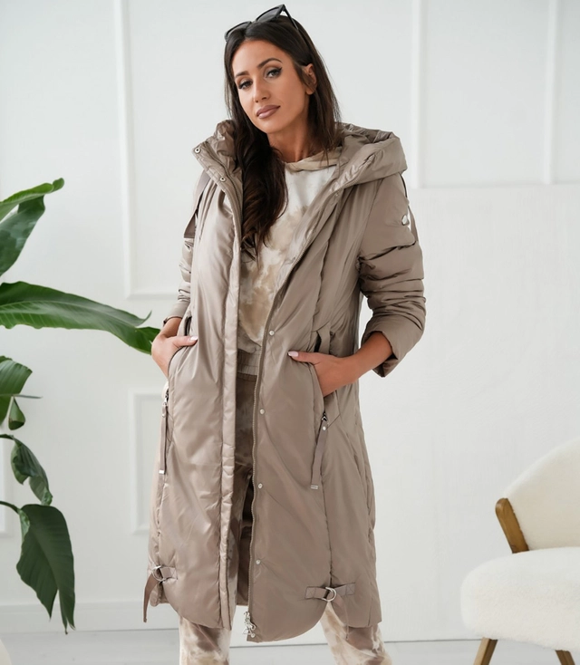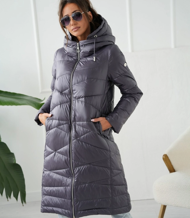 Długa kurtka damska ciepła z pikowaniem z kapturem ANABEL