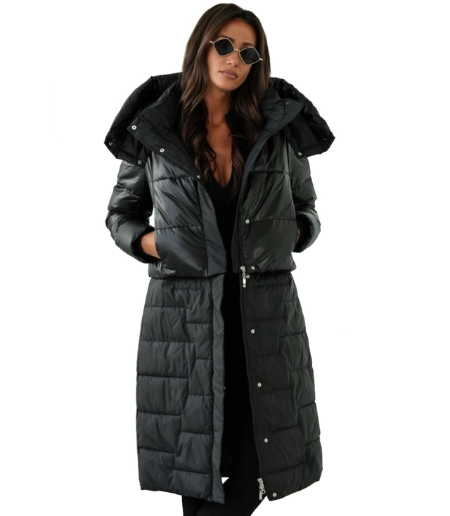 Pikowany płaszcz 2w1 z kapturem Ocieplony Elegancka AMANDA