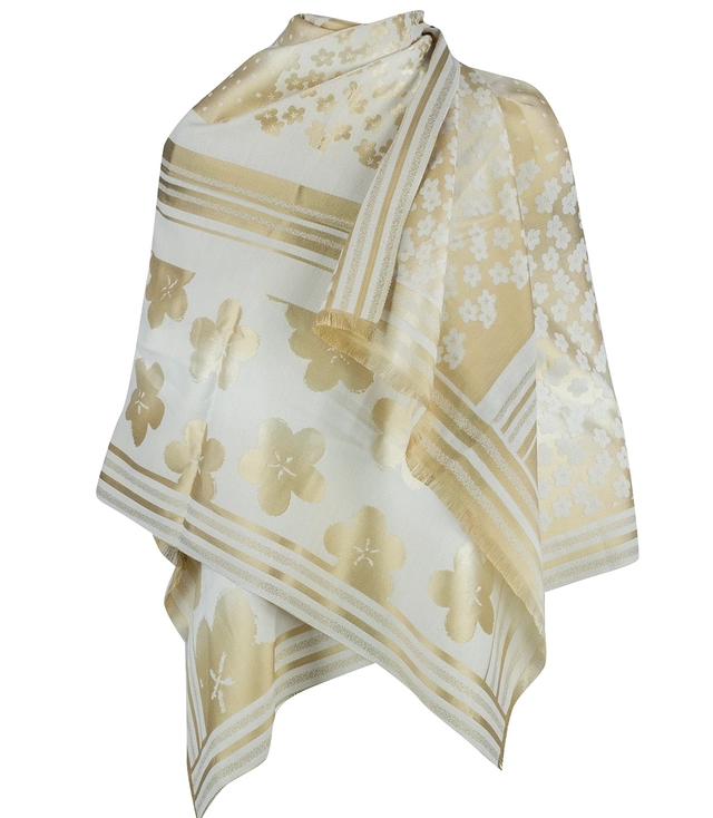 Elegancki dwustronny szalik z złotą nitką i wzorem w kwiaty