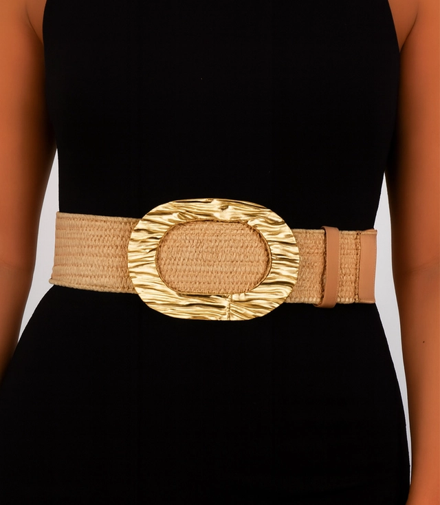 Pleciony pasek damski z dużą klamrą