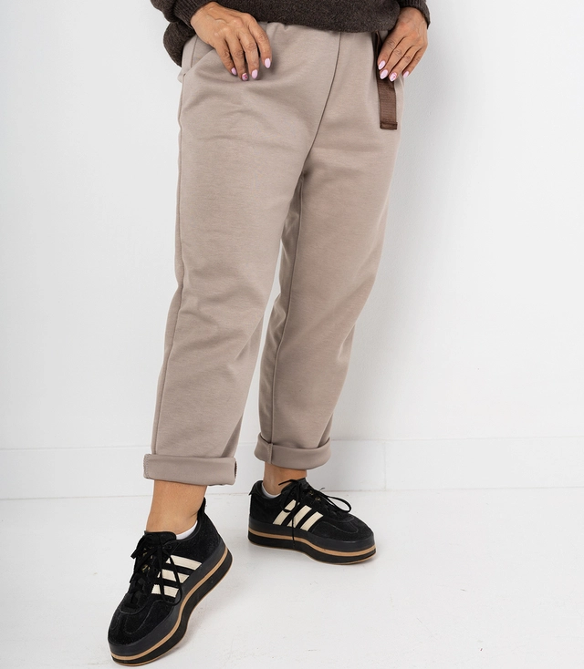 Damskie spodnie materiałowe casual z paskiem EVELIN