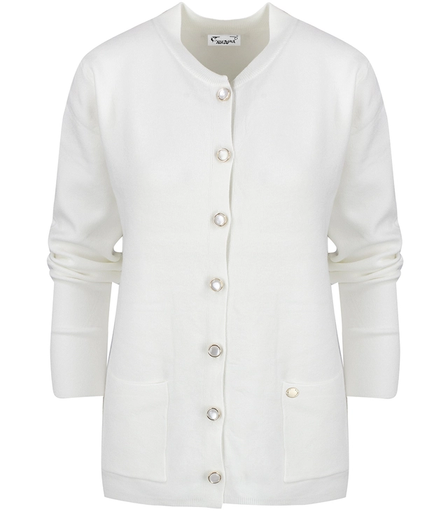 Stylowy kardigan sweter AZALIA zapinany na guzik ozdobne obszycie