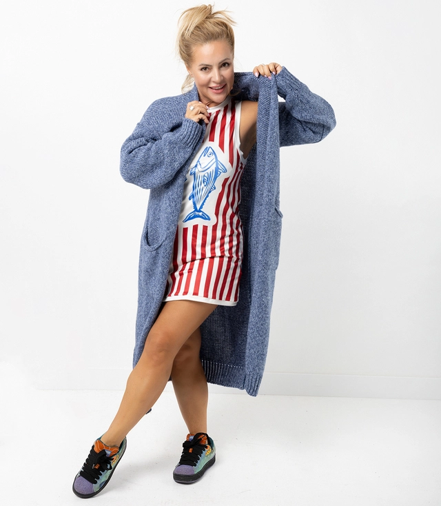 Dzianinowy płaszcz przejściowy kardigan sweter