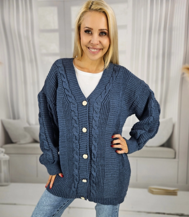 Klasyczny ciepły gruby krótki kardigan sweter EMILIA ozdobne guziki