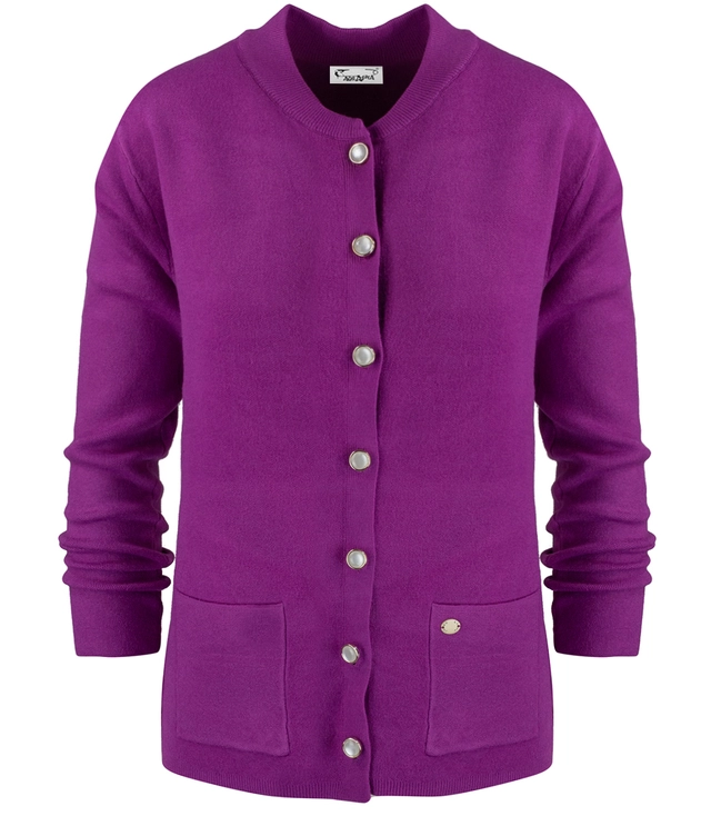 Klasyczny ciepły gruby krótki kardigan sweter EMILIA ozdobne guziki