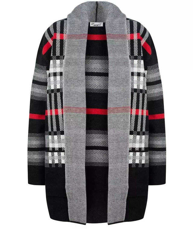 Ciepły długi Sweter Kardigan w jodełkę Elegancki