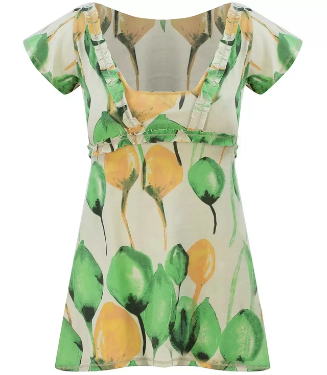 Bluzka Tunika owoce print lato falbanka bawełna