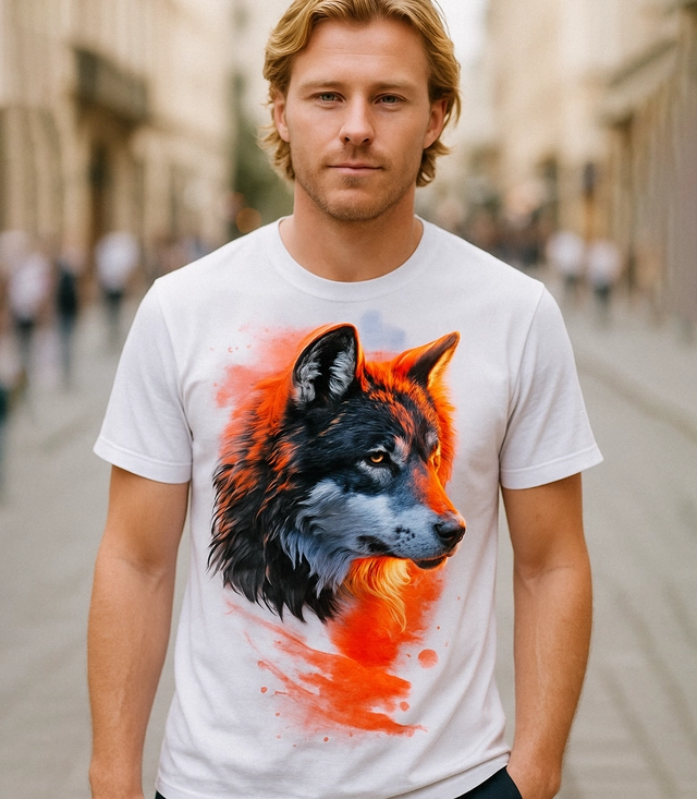 Koszulka męska t-shirt z dużym nadrukiem wilka bawełna