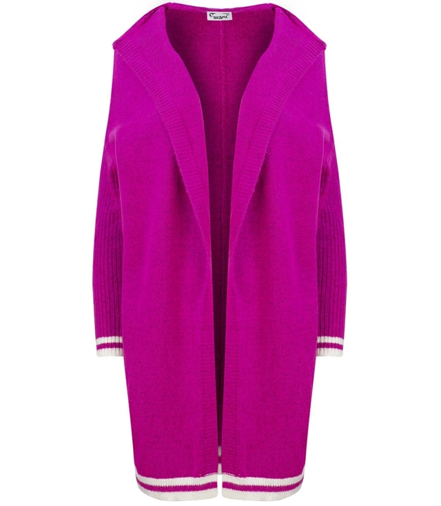 Długi, niezapinany kardigan z dużym kapturem