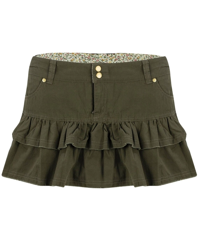 A short mini skirt finished with two frills is a seductive addition to your wardrobe. This very girly cut is made of thick denim for durability and comfort. The skirt has two front pockets for easy storage of small items. The mini length gives the skirt an extraordinary character and is the perfect choice for everyday use. The skirt has belt loops, which allows you to adjust it to your needs. This short, sexy skirt is a must-have in every woman's wardrobe.