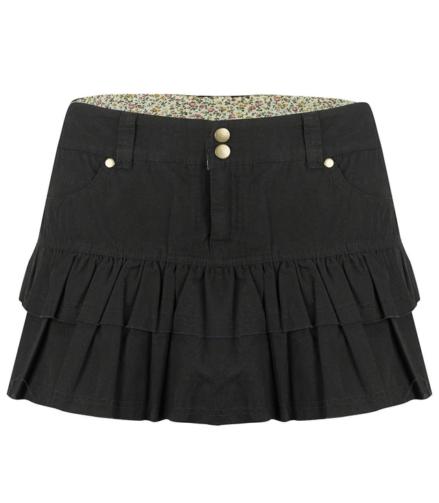 A short mini skirt finished with two frills is a seductive addition to your wardrobe. This very girly cut is made of thick denim for durability and comfort. The skirt has two front pockets for easy storage of small items. The mini length gives the skirt an extraordinary character and is the perfect choice for everyday use. The skirt has belt loops, which allows you to adjust it to your needs. This short, sexy skirt is a must-have in every woman's wardrobe.