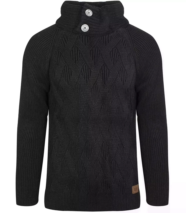 It has a turtleneck fastened with buttons