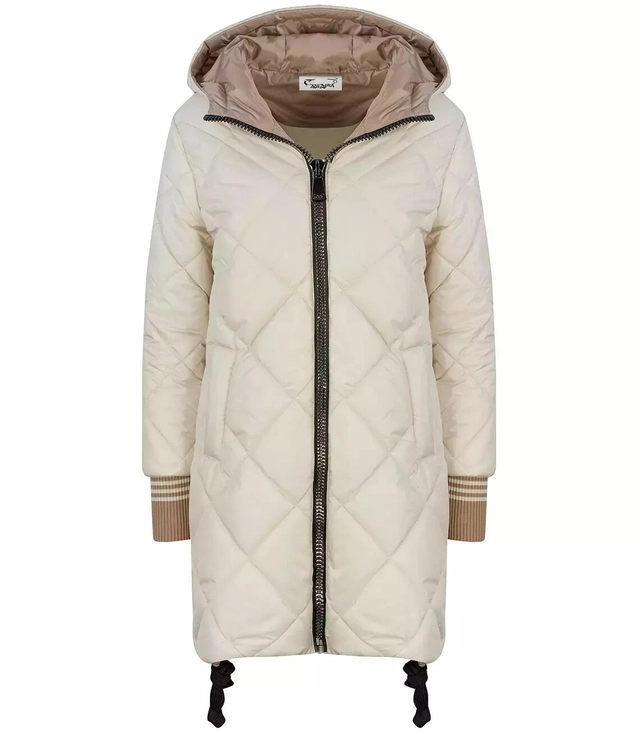 Warm thick quilted jacket with a hood winter