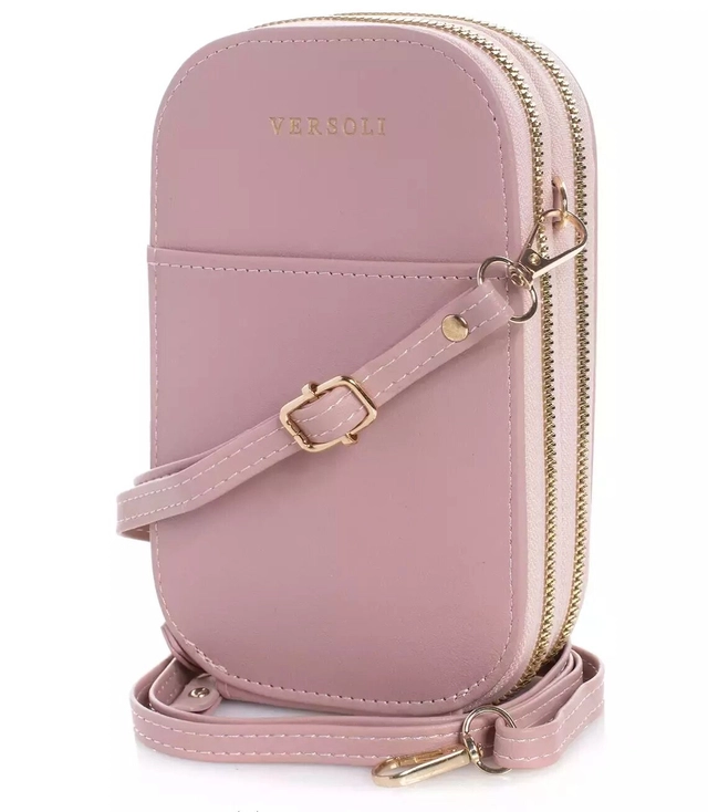 It has 2 chambers with a well-thought-out arrangement of compartments for cards, coins and banknotes or a phone