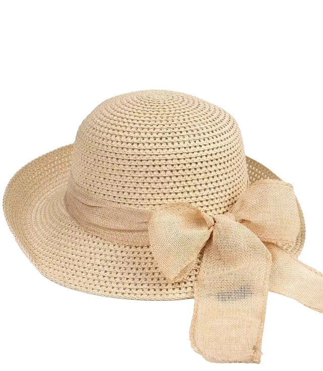 Openwork straw hat with wide ribbon bow