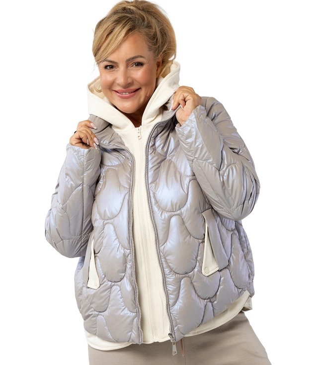 Aria jacket is a perfect combination of modern style and comfort. The original quilting attracts attention, and the pearl sheen of the material adds elegance and a unique character. Sweatpants inserts give it a sporty vibe, and the practical hood protects against the cold and wind. Thanks to its lightweight construction and functional details, it will work well both in urban styling and in everyday, looser looks.
