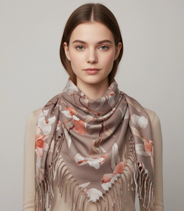 Floral scarf is a combination of functionality and timeless style. Its floral pattern and soft fabric will wrap you in warmth, while adding a unique elegance to any ensemble. Perfect for everyday, work or walking - an indispensable accessory in the autumn-winter season.