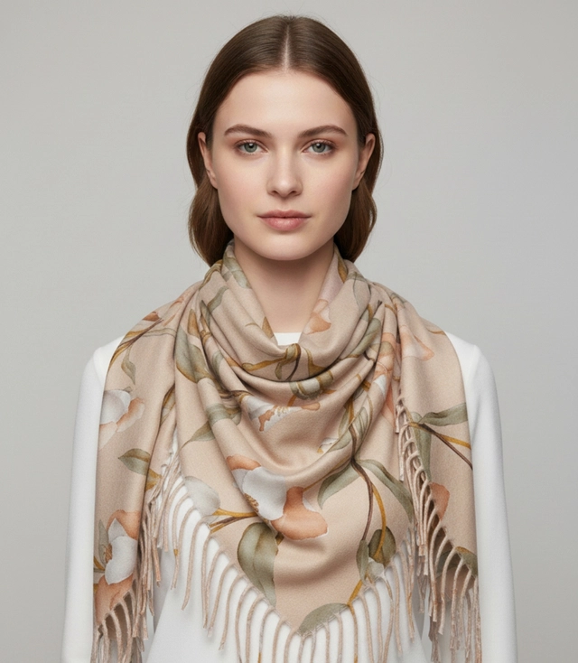 Floral scarf is a combination of functionality and timeless style. Its floral pattern and soft fabric will wrap you in warmth, while adding a unique elegance to any ensemble. Perfect for everyday, work or walking - an indispensable accessory in the autumn-winter season.