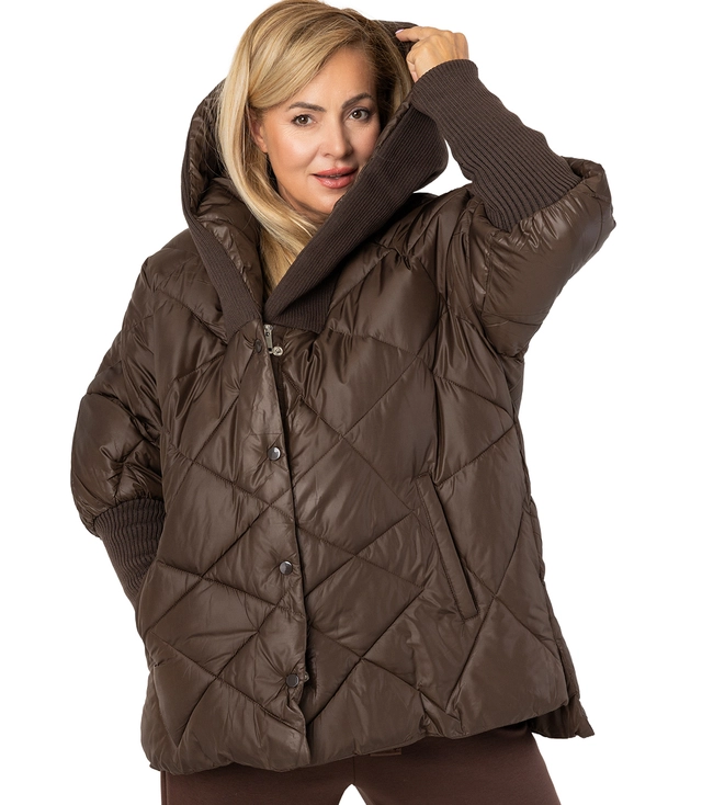 "Diamond" is the quintessence of urban chic and comfort. The loose form hides the shortcomings of the figure, and the combination of shiny material with a thick knit creates a dynamic and modern look. This is a model that will be perfect for both everyday wear and weekend trips
