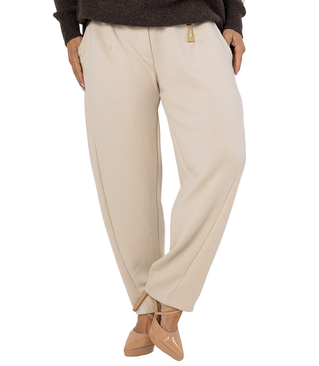 The "Liliana" pants are the perfect combination of the latest trends and unparalleled comfort. Their unique "banana" cut with loose hips and tapered legs perfectly shapes the silhouette, while providing full freedom. The elastic waistband and fleshy knit fabric guarantee comfortable all-day wear, while the attached belt allows you to accentuate your waist and create a variety of looks