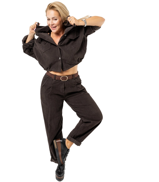 This two-piece set combines comfort and style to create a fashionable monochromatic outfit. Made of soft corduroy (baby cord), it is the perfect base for many autumn-winter outfits.
