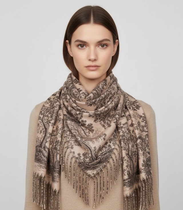 • Wrap yourself in style - beige women's scarf with tassels, ideal for colder days