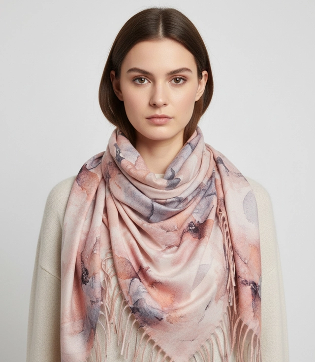 Delicate elegant women's shawl with tassels - a combination of comfort and nature that will enliven your winter styling. Perfect for both casual and more outgoing looks.