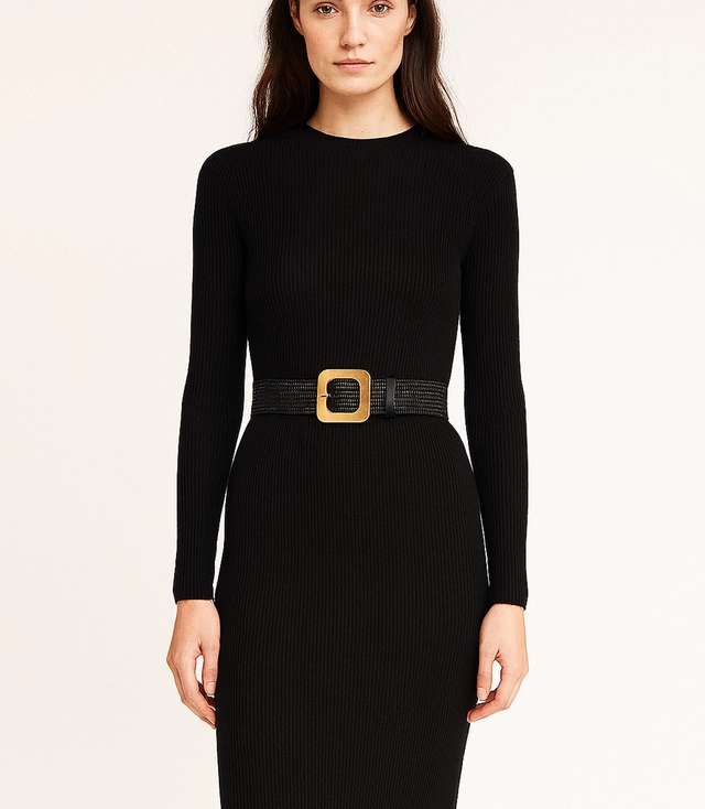 An elegant belt with a braided structure is a fashionable accessory that beautifully accentuates the waist and adds style to any outfit. Its wide form and large decorative buckle create a striking whole, ideal for dresses, shirts or light cardigans.