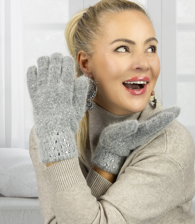 These elegant gloves are a combination of comfort and chic. Decorative zircons subtly shine, adding charm to any styling. Warm and soft, they will be perfect for colder days.