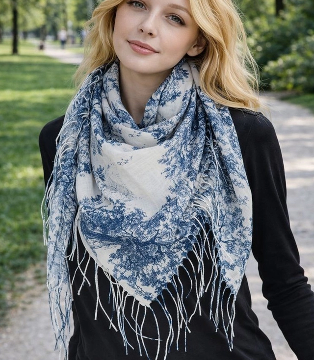 The 100x100 stylish spring pattern scarf is a feminine accessory that will instantly transform any styling. The soft, lightweight polyester fabric layers beautifully and is extremely comfortable to wear all day long. The square format of 100 x 100 cm allows you to tie it classically around your neck, nonchalantly throw it over your shoulders or tie it on your handbag, creating a fashionable, elegant accent.