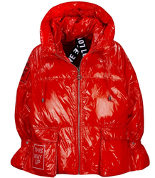 - Kurtka ma szelki, jest możliwość noszenia jej jak plecak.