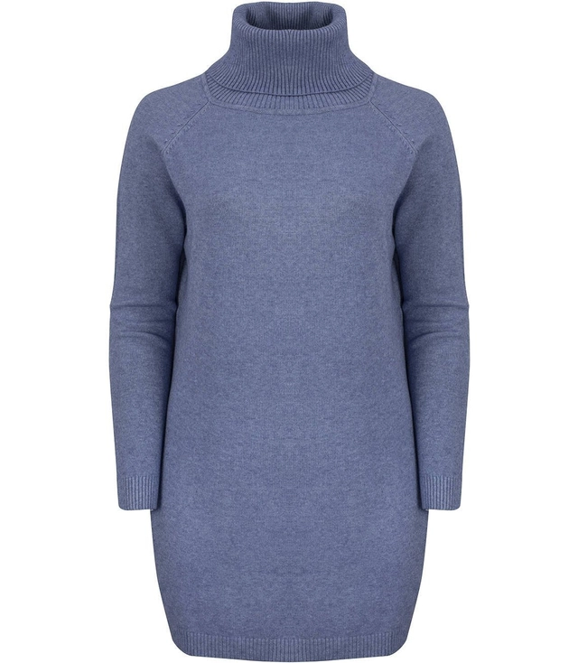 - Ciepła, luźna sukienka dzianinowa z golfem