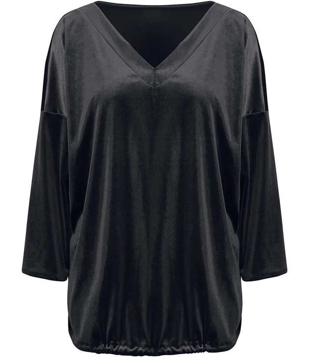 Welurowa damska bluza bluzka z dekoltem w szpic