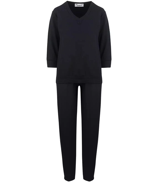 Model z dekoltem w serek oraz brzegami wykończonymi ściągaczem