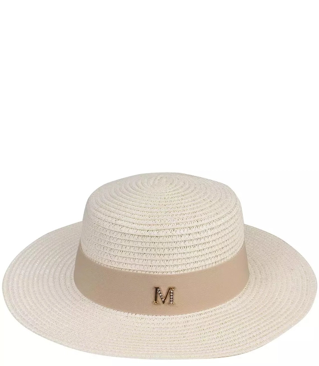 Kapelusz słomkowy z rafii z taśmą i literą M modny