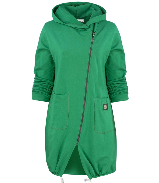 Cienka długa bluza ze skośnym suwakiem i kapturem LILIANA