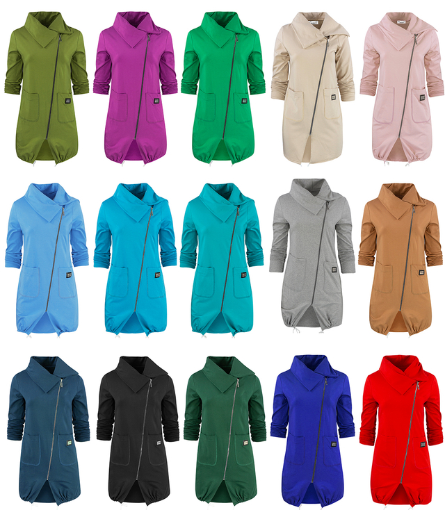 Opinie o Cienka długa bluza ze skośnym suwakiem i kominem BEATA