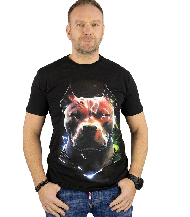 Męski t-shirt koszulka krótki rękaw z nadukiem z psem