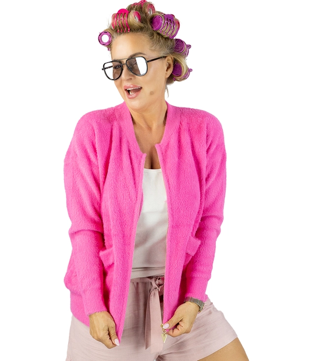 Krótki kardigan sweter rozpinany z puszystej dzianiny "COCO CHIC"