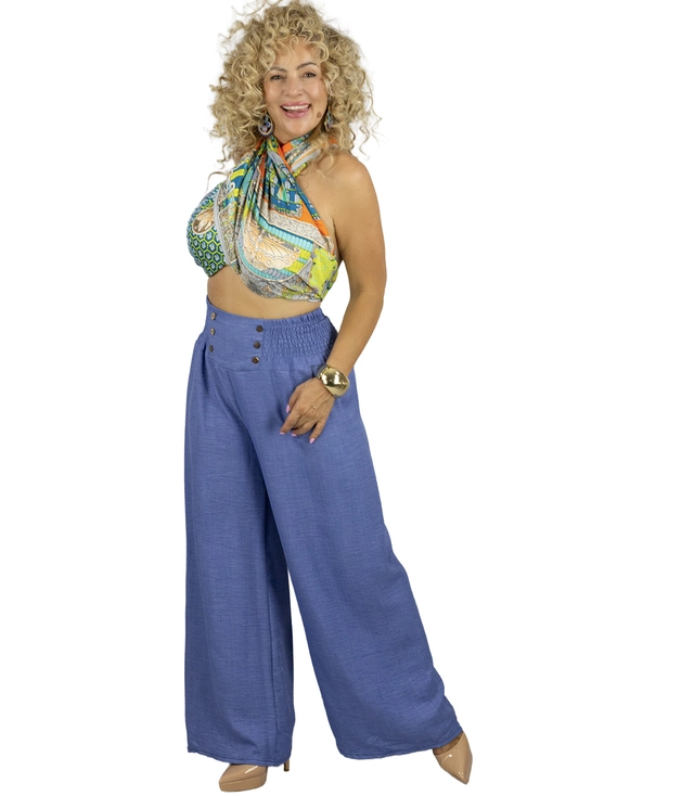 Luźne damskie spodnie palazzo szeroka nogawka wysoki stan LENA