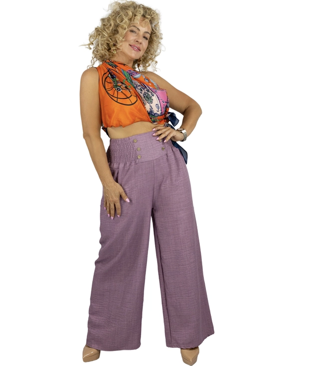 Luźne damskie spodnie palazzo szeroka nogawka wysoki stan LENA