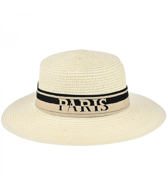 Kapelusz typu boater z napisem „PARIS” – styl i ochrona na lato