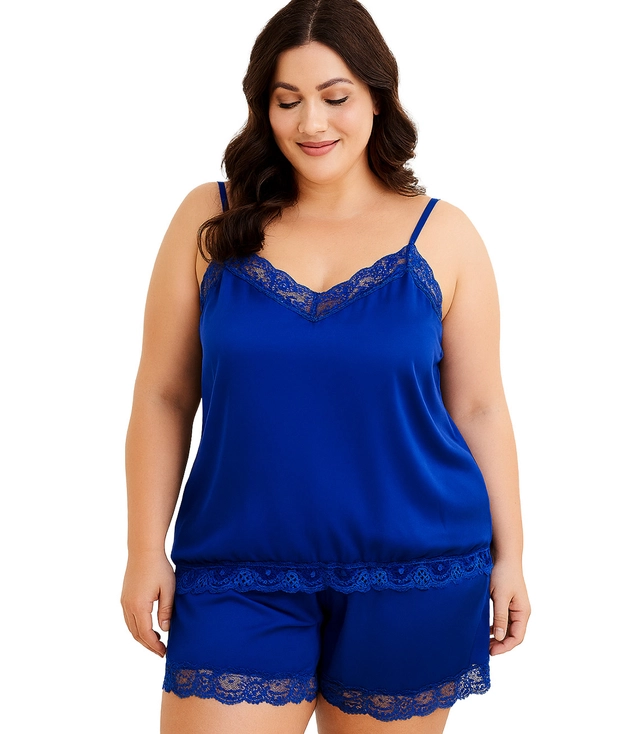 Satynowy komplet piżamowy z koronką spodenki top halka