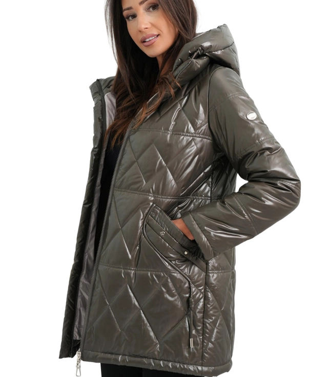 Elegancka kurtka damska, idealna na chłodne dni! Wykonana z wysokiej jakości materiału o połyskującym wykończeniu, który zachwyca nowoczesnym stylem i zapewnia doskonałą ochronę przed wiatrem i zimnem.