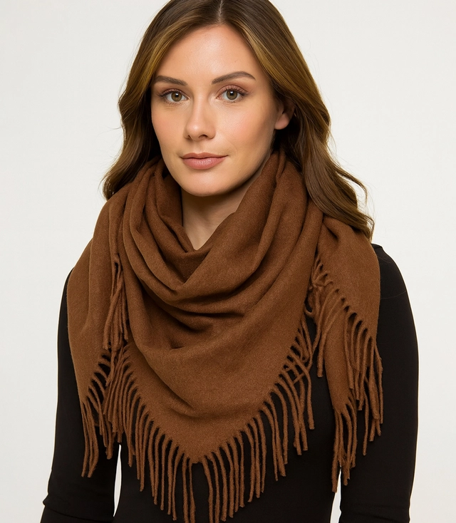 Jednokolorowy szal szlik chusta z frędzlami GRACE