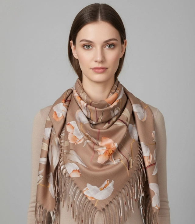 Kwiatowa chusta to połączenie funkcjonalności i ponadczasowego stylu. Jej kwiatowy wzór i miękka tkanina otulą Cię ciepłem, jednocześnie dodając każdemu zestawowi wyjątkowej elegancji. Idealna na co dzień, do pracy lub na spacer – niezastąpiony dodatek w sezonie jesienno-zimowym.