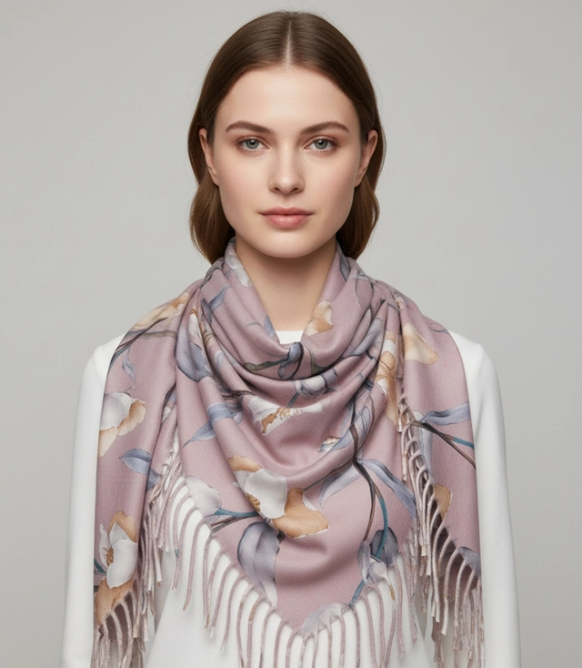 Kwiatowa chusta to połączenie funkcjonalności i ponadczasowego stylu. Jej kwiatowy wzór i miękka tkanina otulą Cię ciepłem, jednocześnie dodając każdemu zestawowi wyjątkowej elegancji. Idealna na co dzień, do pracy lub na spacer – niezastąpiony dodatek w sezonie jesienno-zimowym.