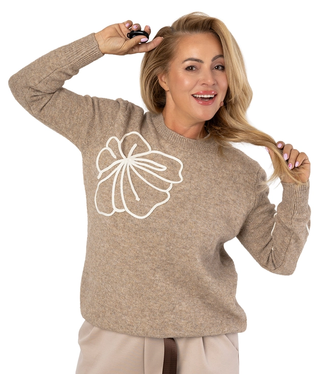 Klasyczny sweter damski z aplikacją kwiat 3D CLASSIC BLOOM