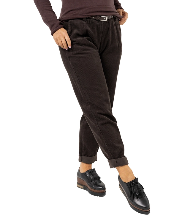 Spodnie "Velvet Cord" to doskonałe połączenie casualowego komfortu z jesienną elegancją. Miękki sztruks jest niezwykle przyjemny w dotyku, a fason z elastycznym pasem gwarantuje wygodę przez cały dzień. Dołączony pasek i możliwość podwinięcia nogawki dają wiele opcji stylizacyjnych, od luźnych po bardziej szykowne zestawy.